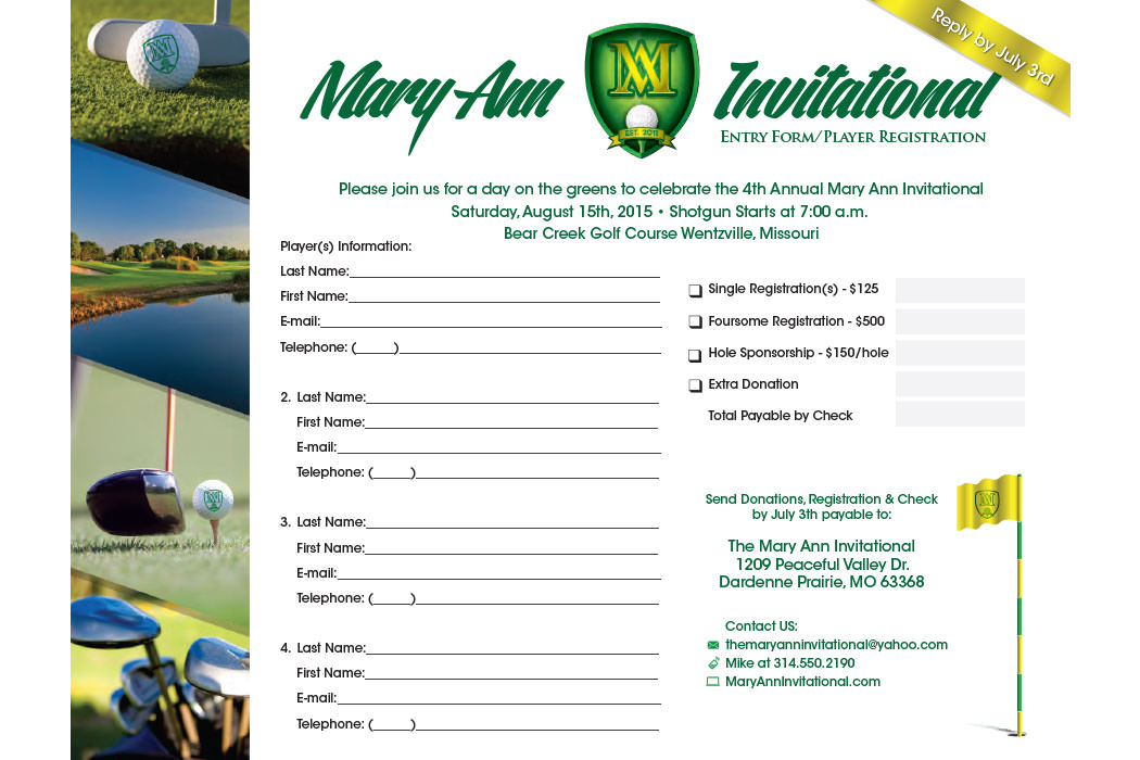 Branding and website created for the Mary Ann Invitational. A golf tournament created to remember and honor the memory, Mary Ann, who lost her battle with Cancer. The Mary Ann Invitational is a charity event that raises funds to help fight cancer by benefiting a different family each year that is affected by this disease… Helping fight cancer…one stroke at a time.