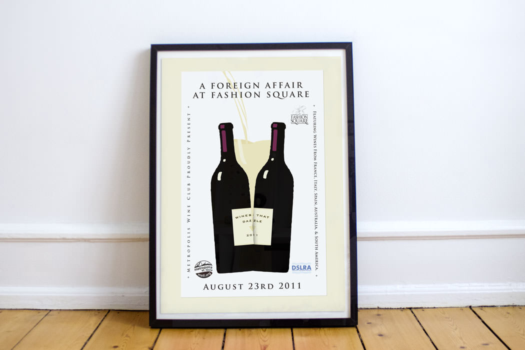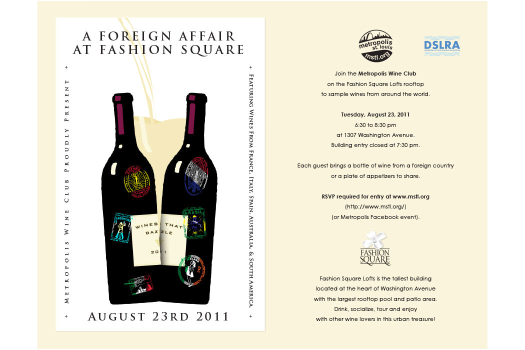Commissioned commemorative posters and creative for a wine tasting at the Fashion Square building. The wine tasting feature wines from all over the world and was a fundraiser for the metropolis of Saint Louis. Limited edition, Digitally printed. To learn more about their events visit their Metropolis page.