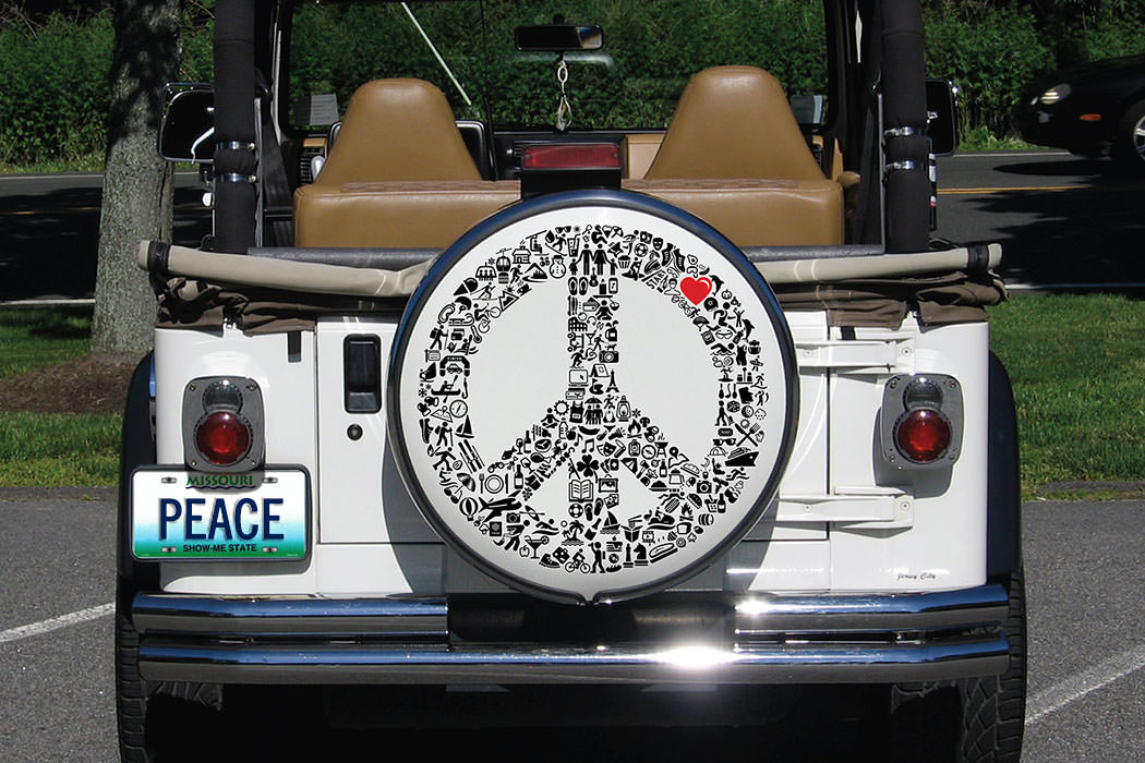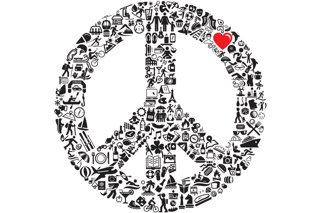 Commissioned illustration for a birthday celebration. The recipient wanted something unique and representative or her lifestyle and with a peace symbol. The peace symbol is created with icons that represents things that are present in her life and give her peace.